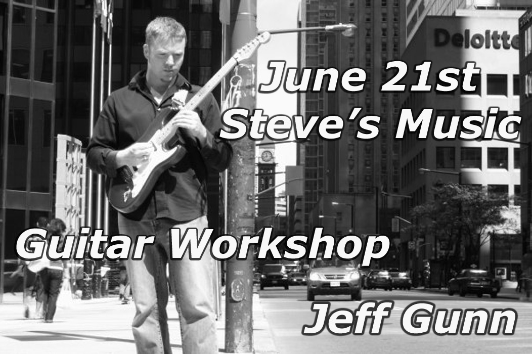 Saturday June 21st at Steve’ s Music downtown – he will be teaching what he knows. A workshop for all levels and players of different genres.