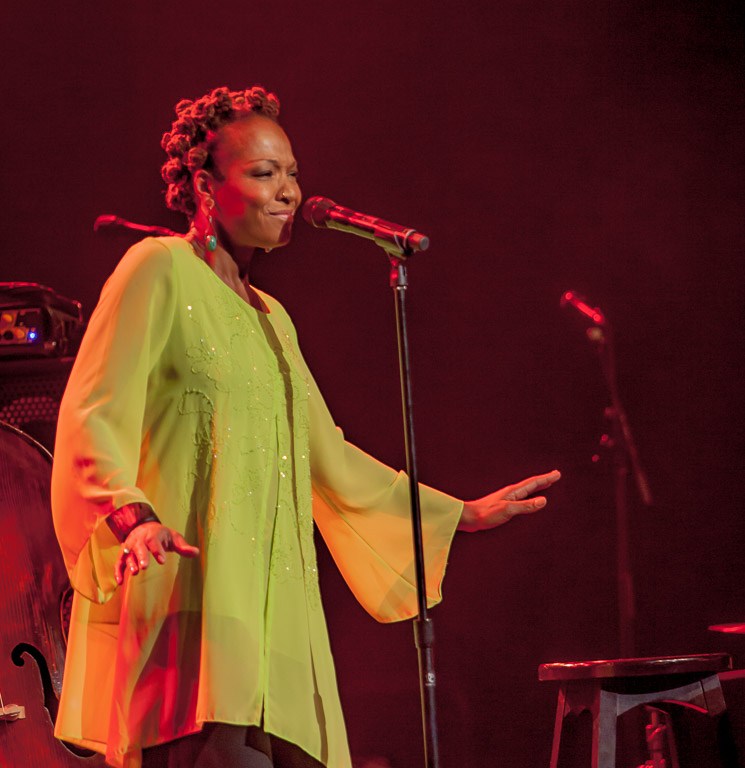 Commencing with the song ‘ All Is Well’, a blend of Lisa’s voice and the introduction of the band musically. What a band it was. Hervé Samb ( guitars, piano, backing vocals), Reggie Washington ( bass, double bass, backing vocals) and Sonny Troupé (drums, percussions). A blend of chemistry as lethal as it is safe in the confines of a lab. R&B opened the doors wide for an audience who – for the most part, hearing and seeing Simone for the first time. Without the energy exchange between stage and punters, it was up to the band to deliver and win the hearts over.