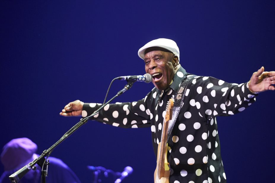 Buddy Guy graced the Montreal Jazz Festival with his presence Saturday night. In a festival that has witnessed the likes of Ella Fitzgerald, Ray Charles and Stevie Wonder – Buddy’s appearance and subsequent reception of the B.B. King Award for outstanding contribution to The Blues was icing on a fortieth anniversary cake.